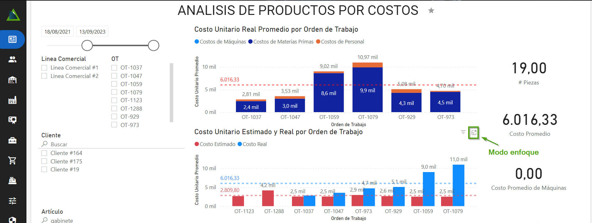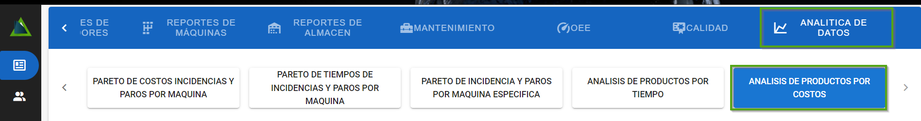 Ahora dirígete a “Análisis de productos por costos” en la sección de “Analítica de datos”.