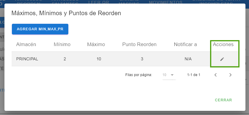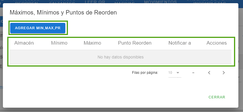 Crearemos un nuevo registro para mínimos y máximos, así que daremos clic en el "Agregar min, max, pr".