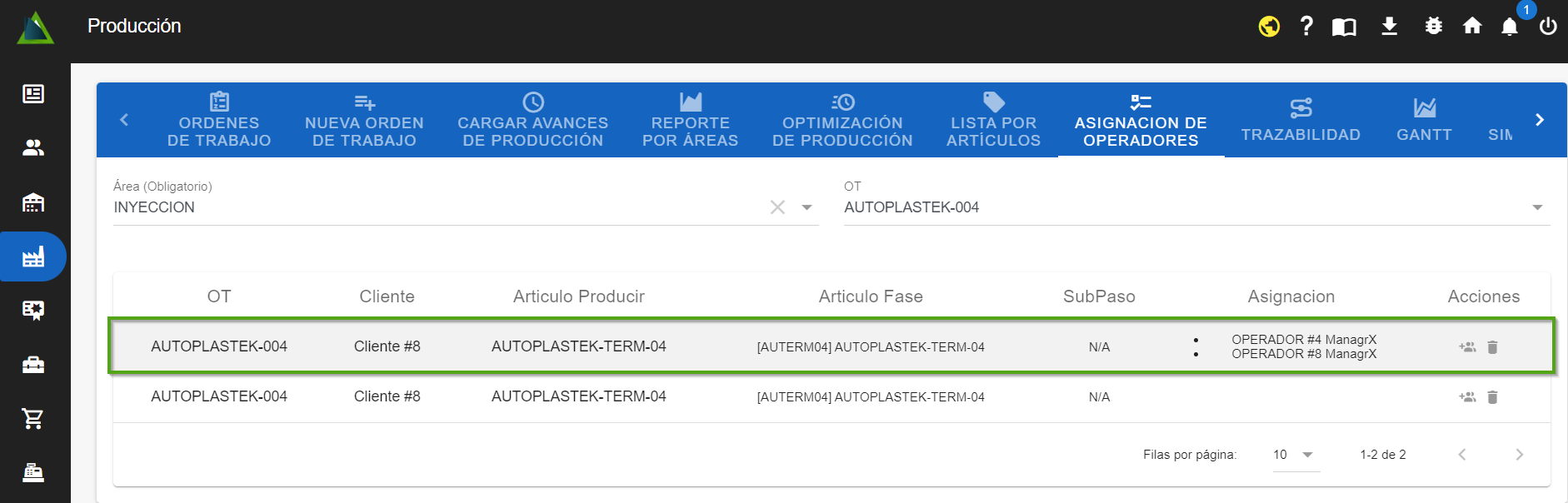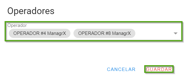 Para poder asignar operadores en ManagrX debe seguir los siguientes pasos: