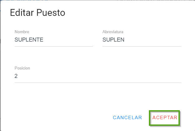 Al seleccionar el puesto de brigada, el diálogo de "editar" se abrirá automáticamente, mostrándote la información correspondiente. Para guardar los cambios realizados, haz clic en "aceptar" para hacerlos permanentes en el sistema.