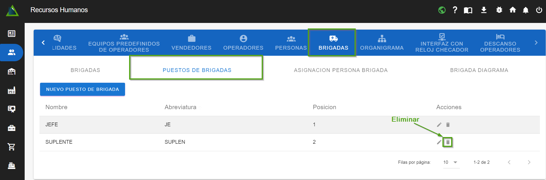 Para poder eliminar un puesto de brigada en ManagrX debe seguir los siguientes pasos:
