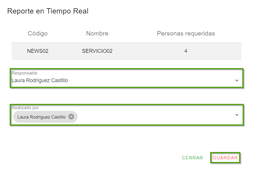 2. Selecciona la persona encargada de realizar dicho reporte, por ejemplo, “Laura Rodríguez Castillo”.