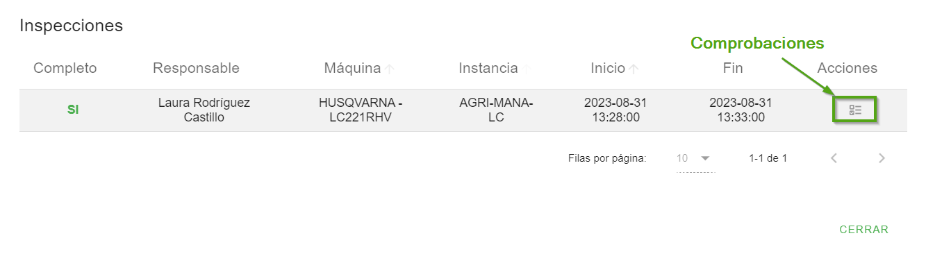 Puedes usar los filtros para ver las inspecciones de algún ciclo en específico.