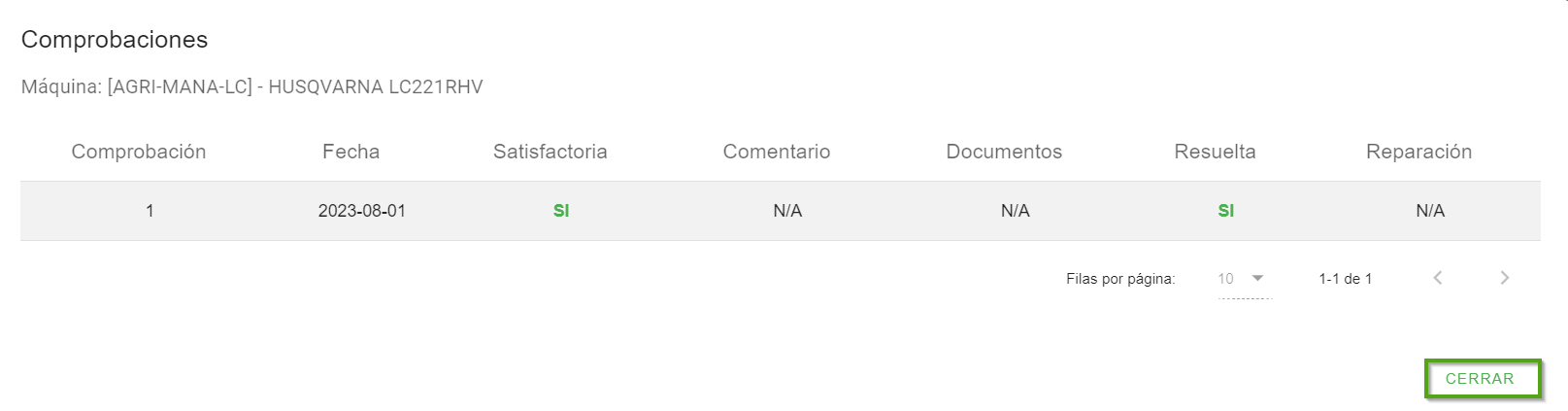 Nota. Una vez hayas observado su(s) comprobación(es) haz clic en “cerrar”, el diálogo se cerrará de forma automática. Esto solo se puede hacer para ciclos ya concluidos.