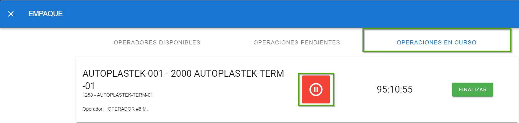Para poder pausar una operación en curso en ManagrX debe seguir los siguientes pasos: