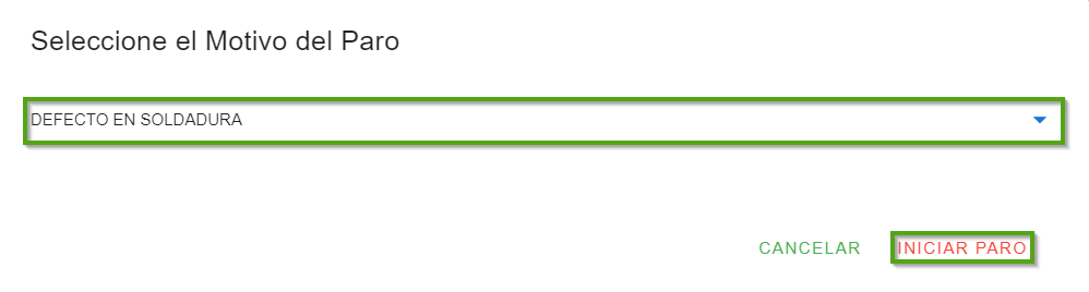 Después indica el motivo y haz clic en “iniciar paro”, podrás ver cómo cambia el ícono.