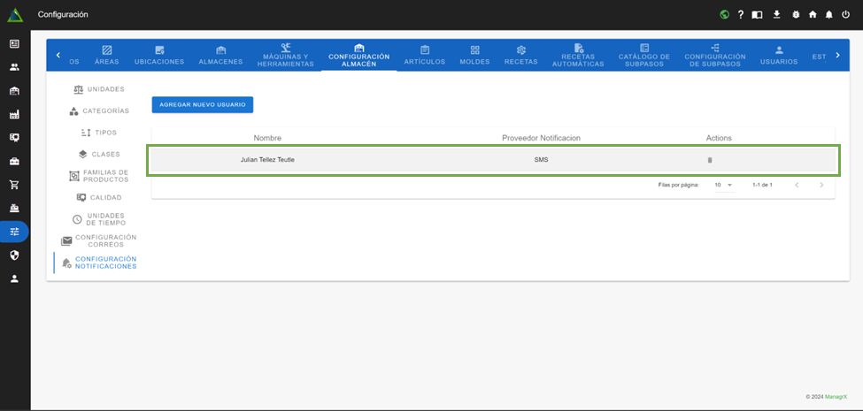 Para poder asignar usuario a Notificaciones en ManagrX debe seguir los siguientes pasos:
