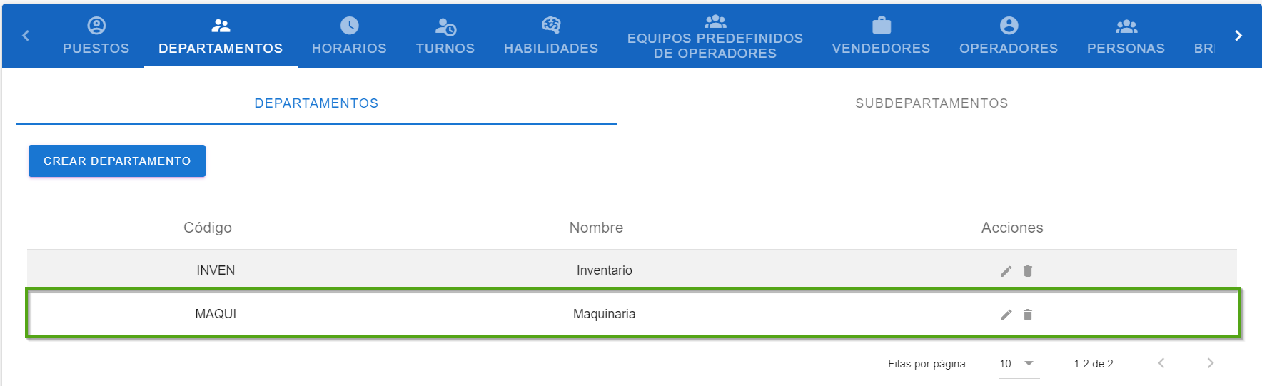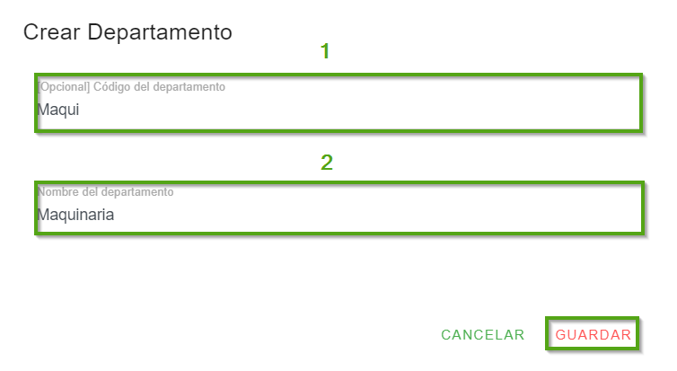 2. Escribe el nombre del nuevo departamento, por ejemplo, "Maquinaria".