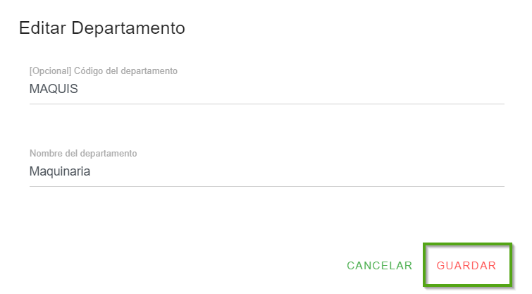 Al acceder aquí, podrás visualizar los departamentos previamente creados en el sistema.