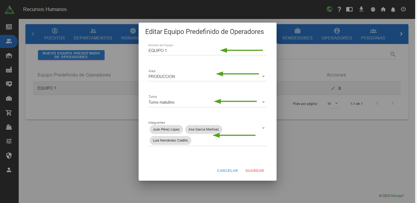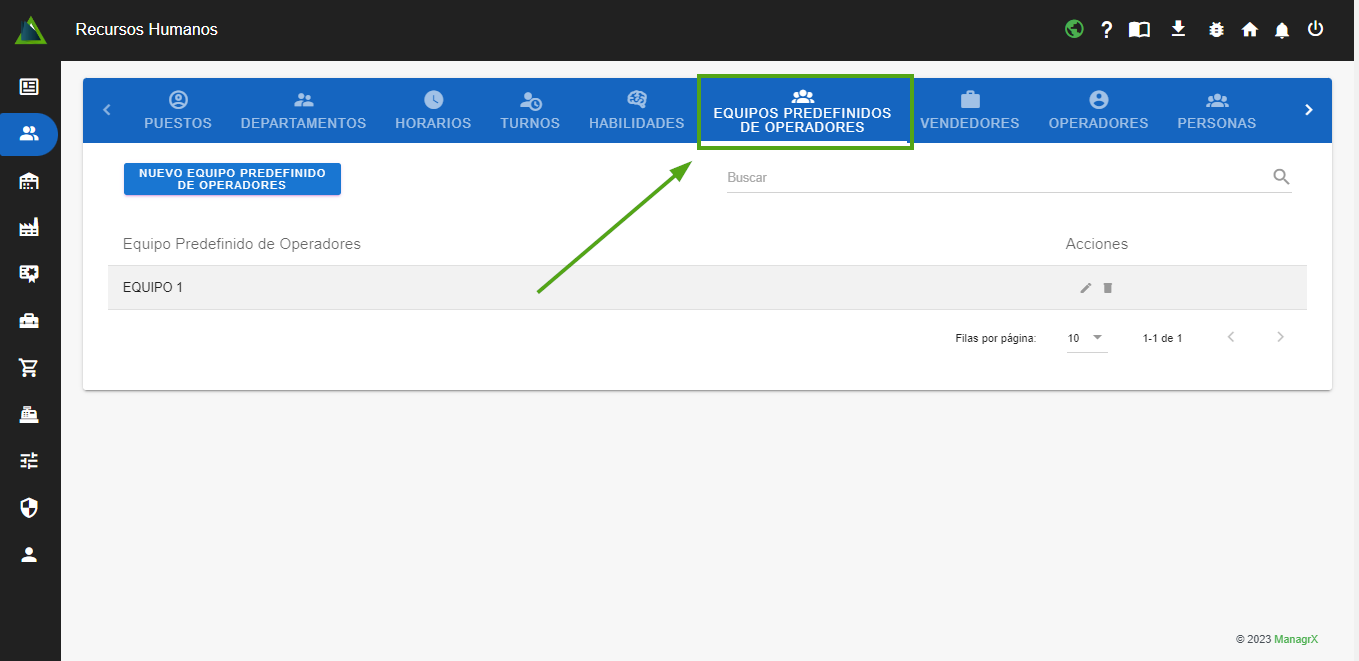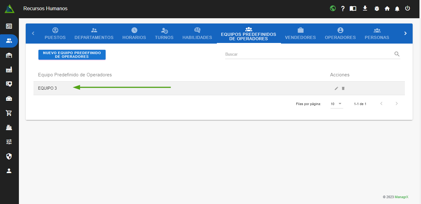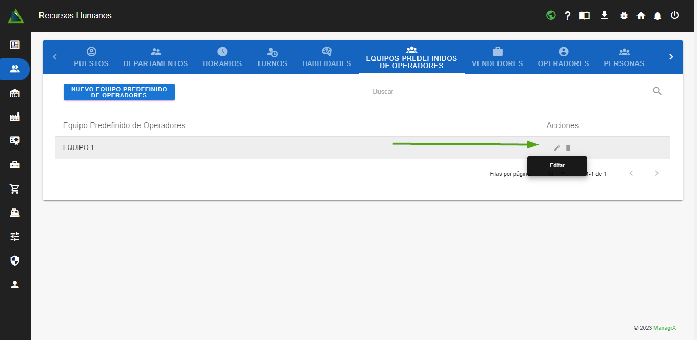 Para editar un Equipo Predefinido de Operadores en ManagrX, sigue estos sencillos pasos: