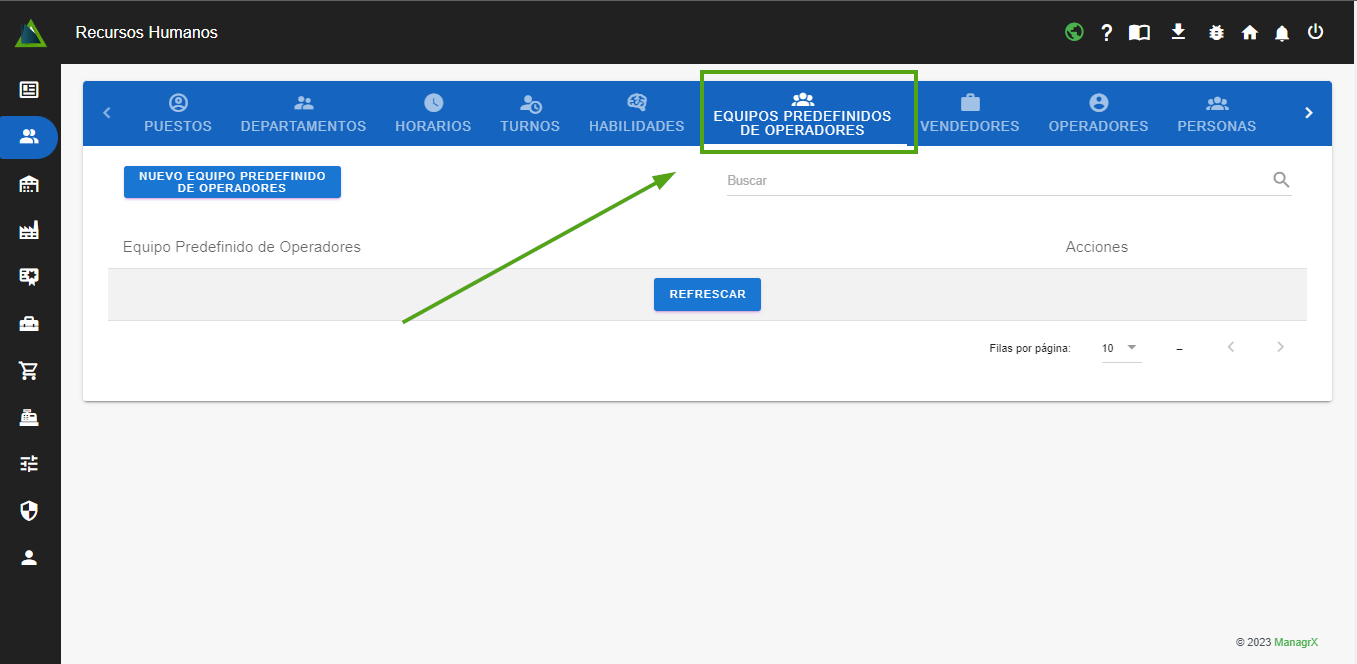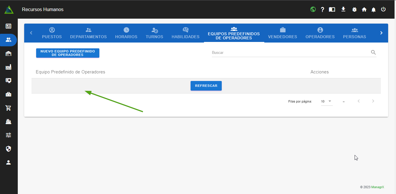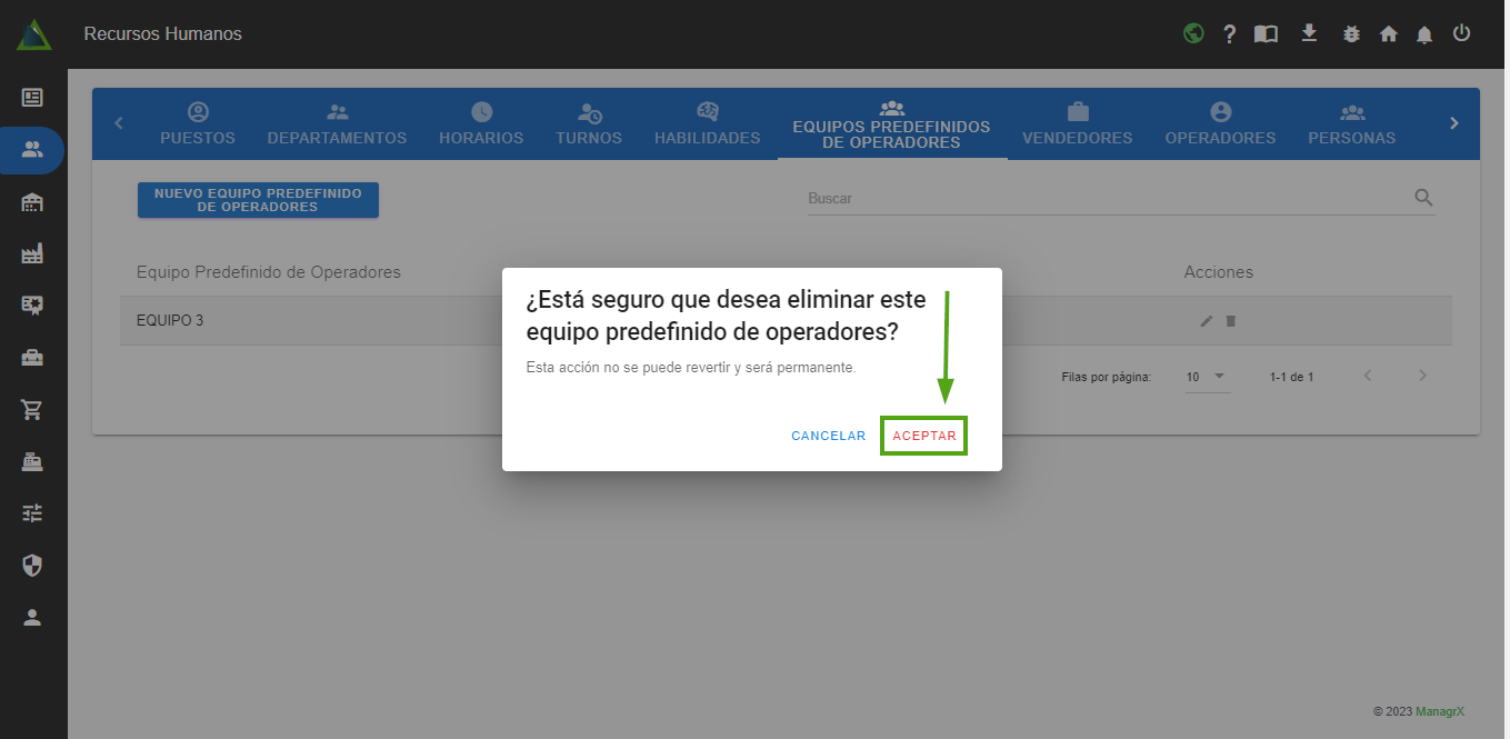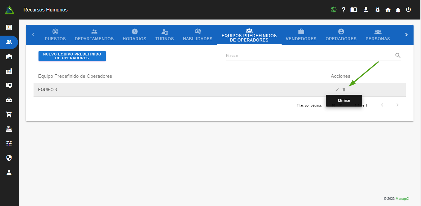 Para eliminar un Equipo Predeterminado de Operadores en ManagrX, sigue estos sencillos pasos: