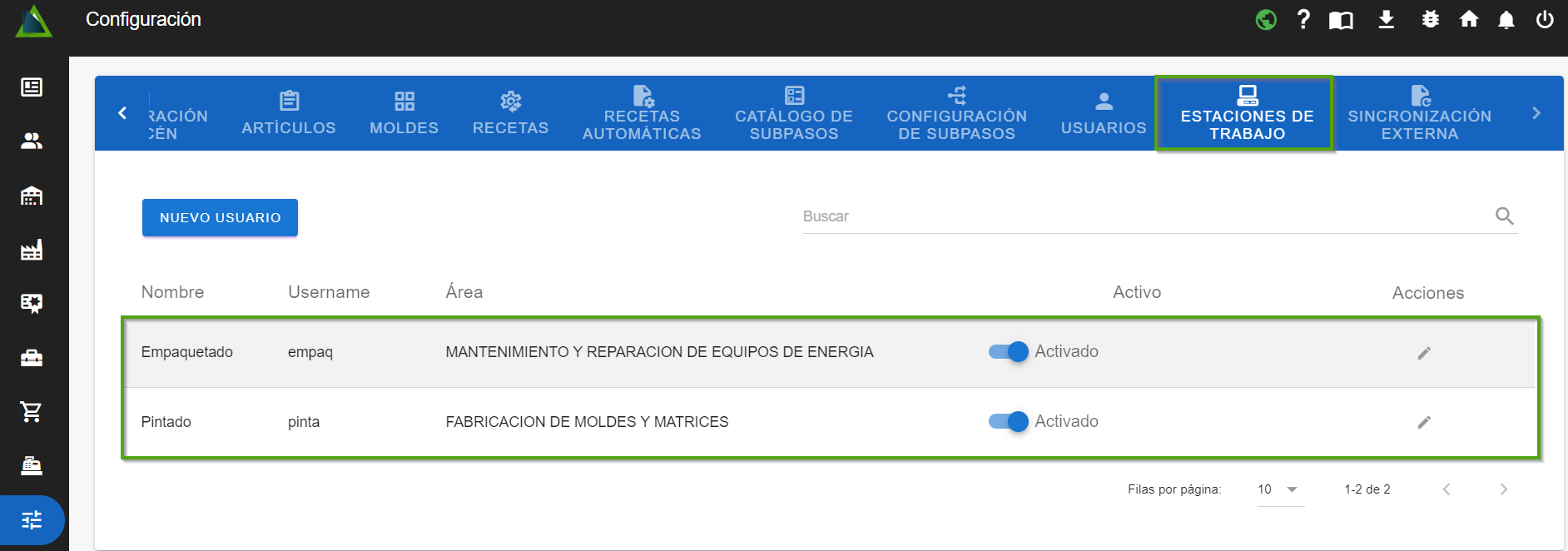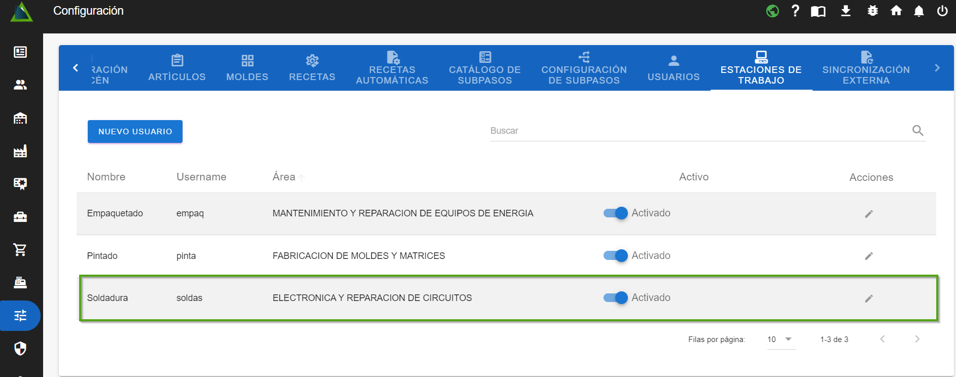 2. Escribe el nombre de la estación, por ejemplo, “Soldadura”.