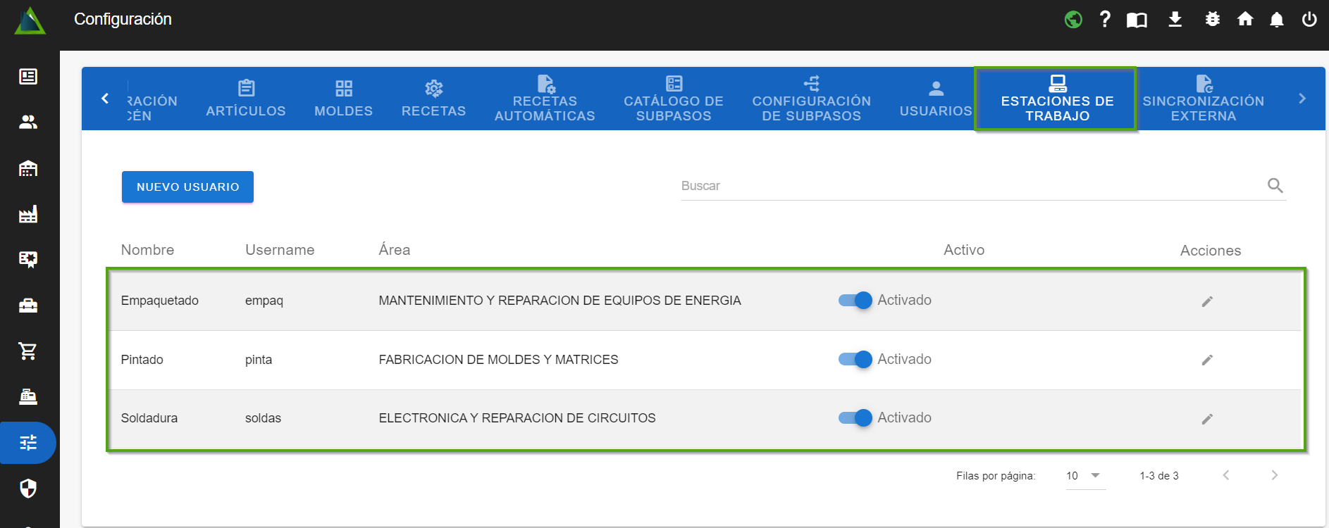 Al acceder aquí, podrás visualizar las estaciones previamente creadas en el sistema.