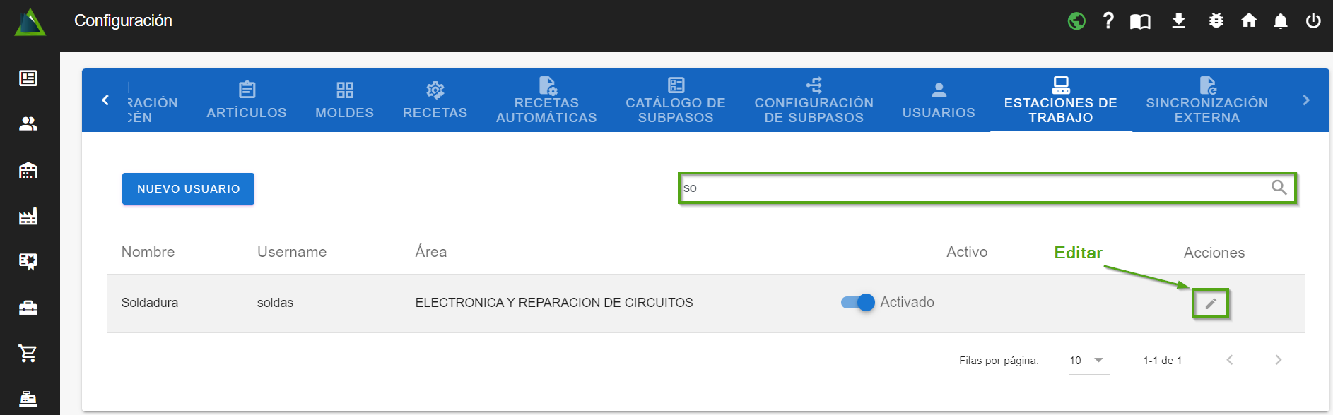 - Una vez que hayas seleccionado la estación que deseas editar, haz clic en el "ícono con forma de lápiz" para abrir el diálogo de edición.