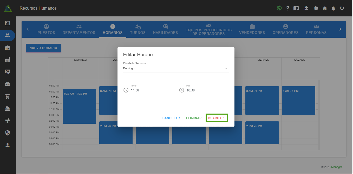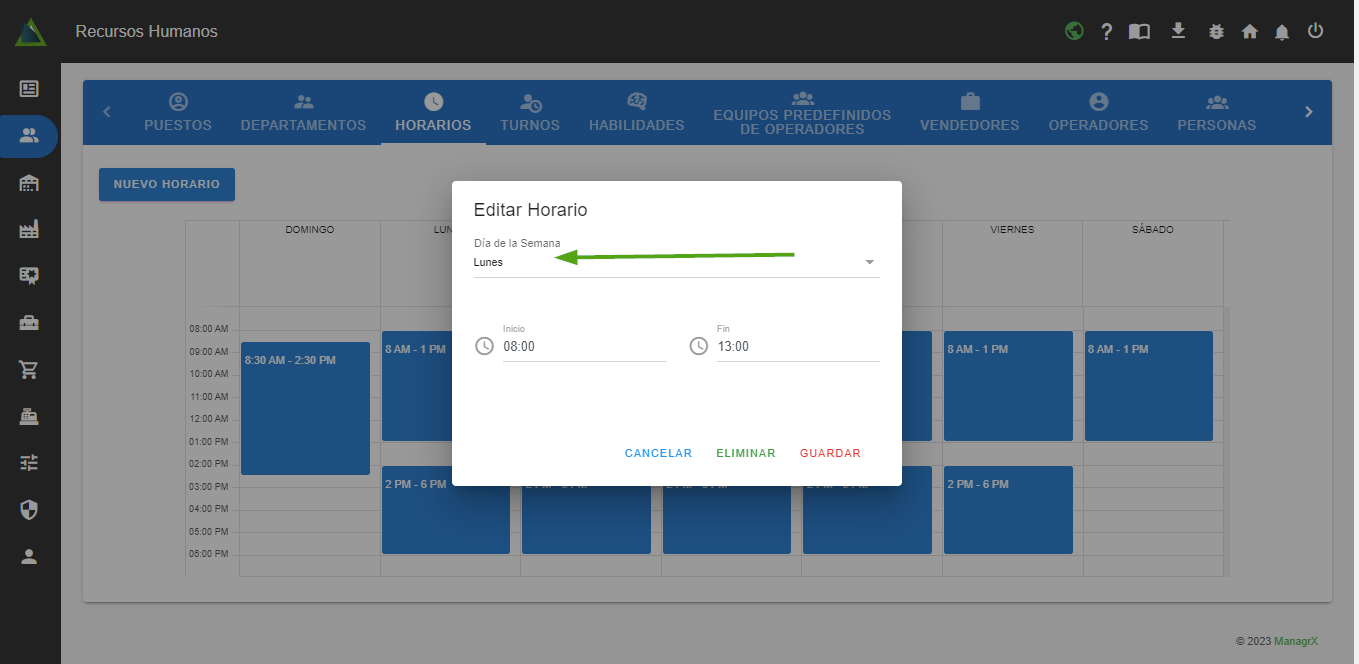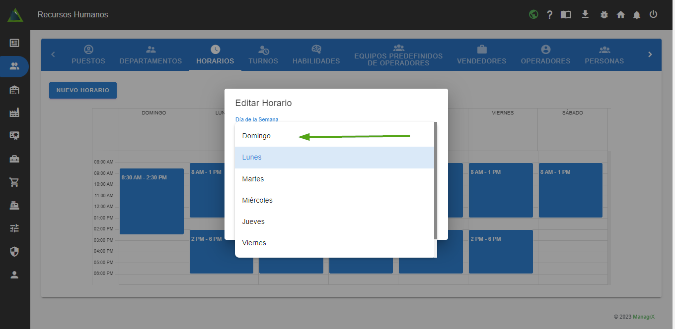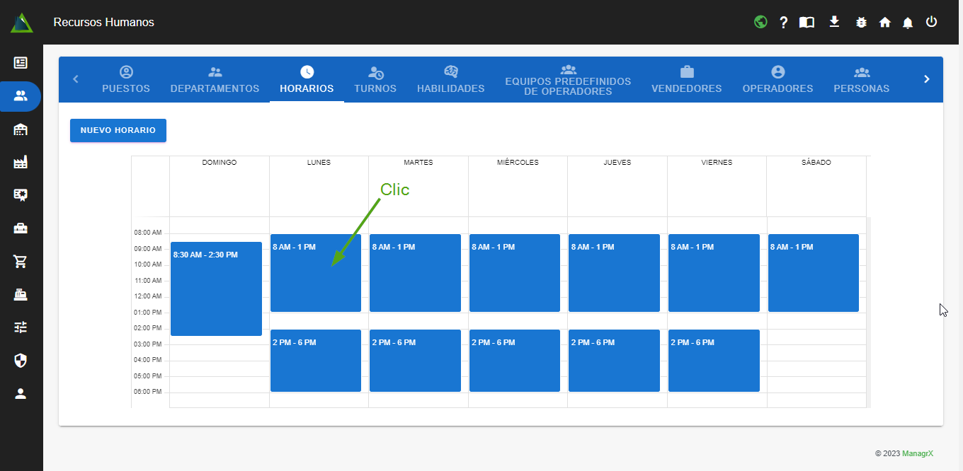 Para poder Editar un nuevo Horario en ManagrX debe seguir los siguientes pasos.