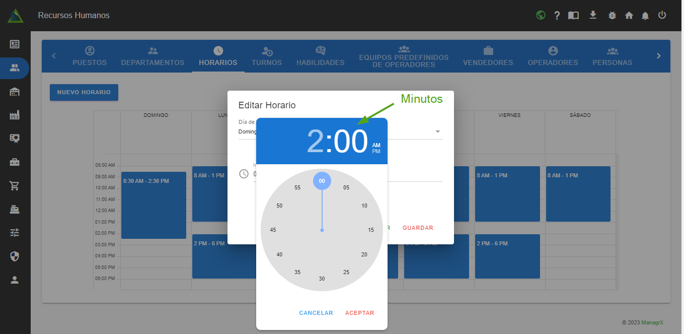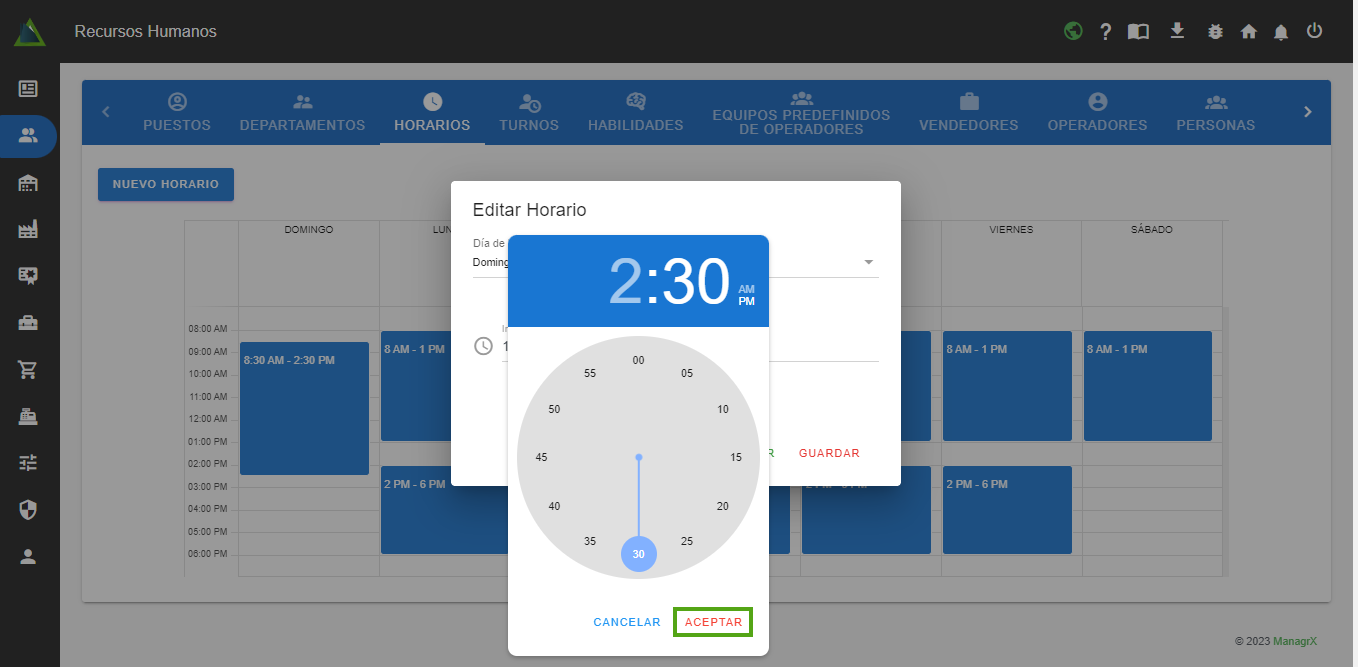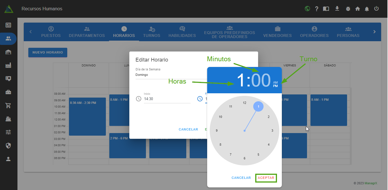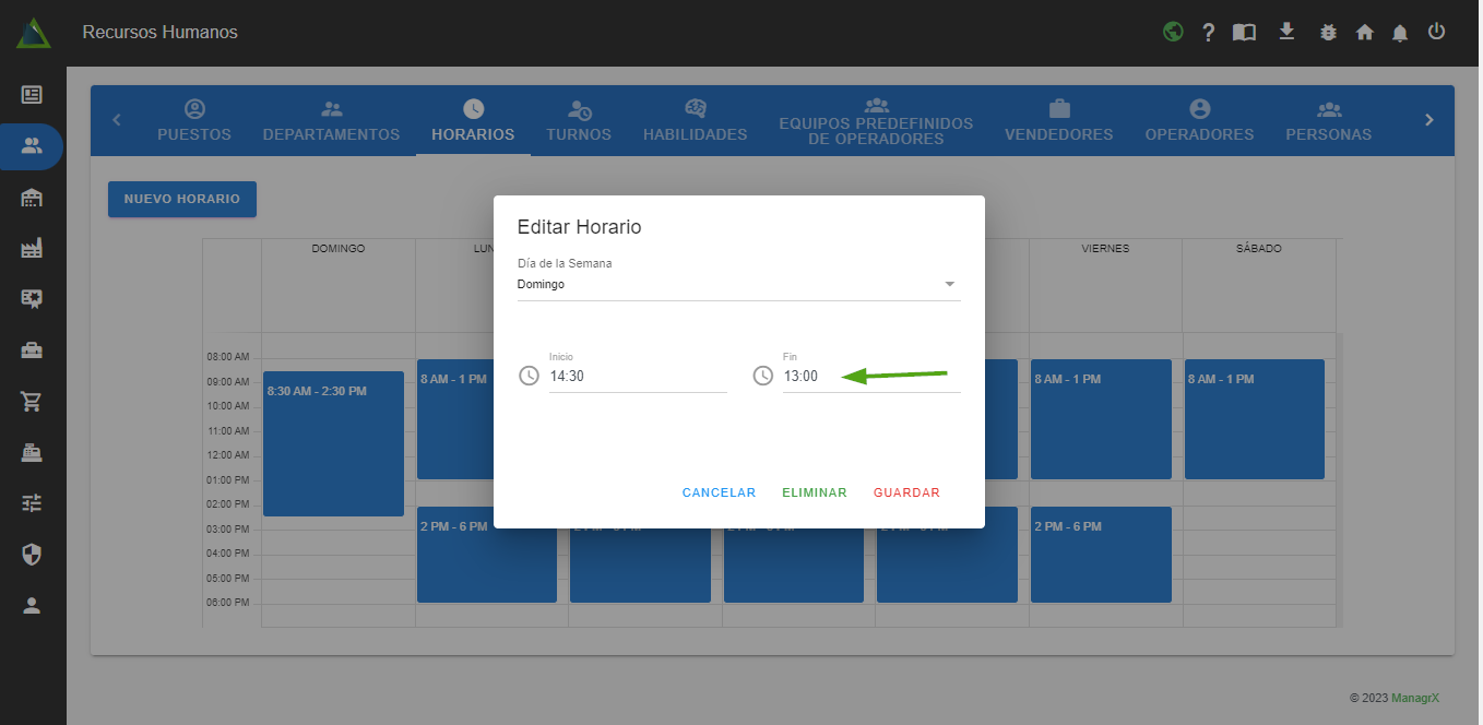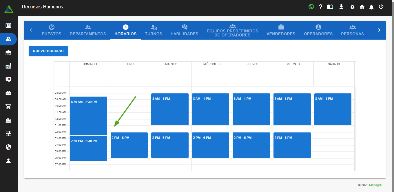 Para poder Editar un nuevo Horario en ManagrX debe seguir los siguientes pasos.