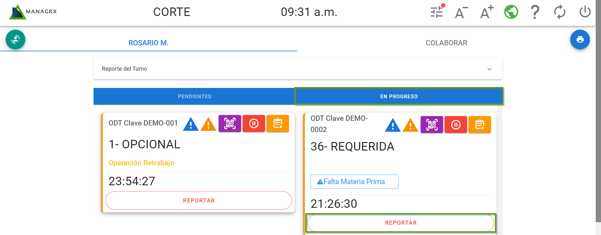 Al acceder aquí, podrás visualizar las ODT que se están ejecutando en este momento.
