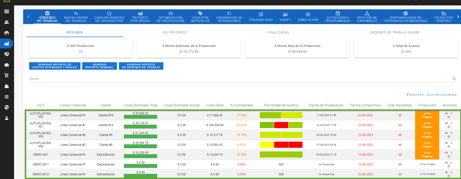 Al ingresar aquí, podrás ver todas las órdenes existentes junto con cierta información y el estado en que se encuentran.