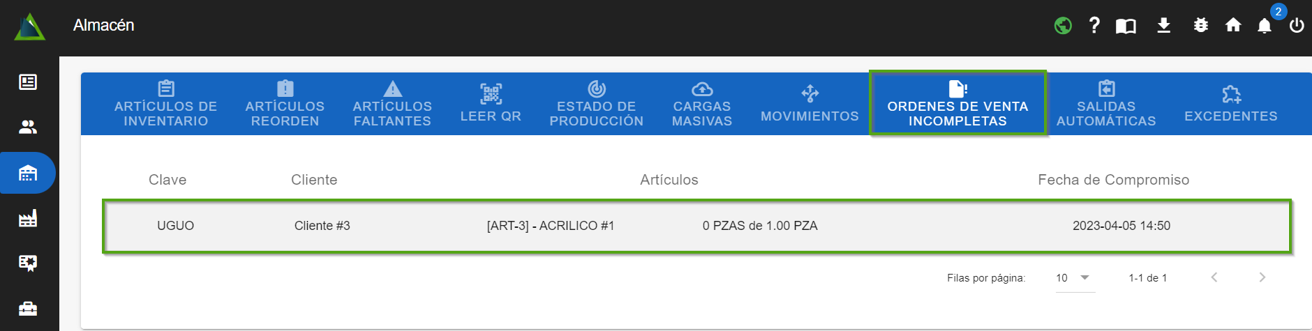 Ahora dirígete a la sección de “Órdenes de ventas incompletas”.