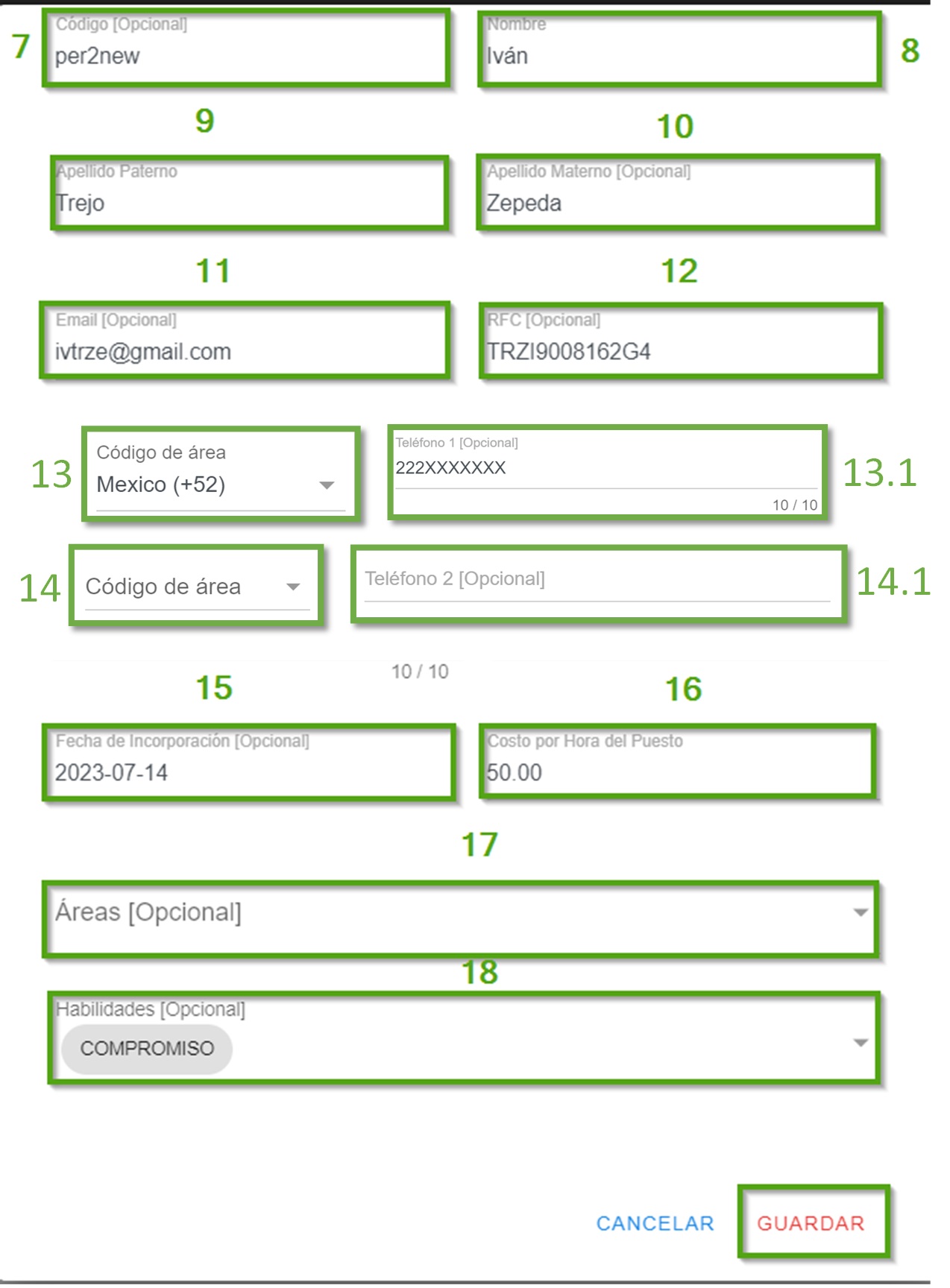 - Haz clic en "Nueva persona" y se abrirá un diálogo emergente con la siguiente información.