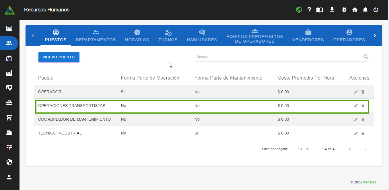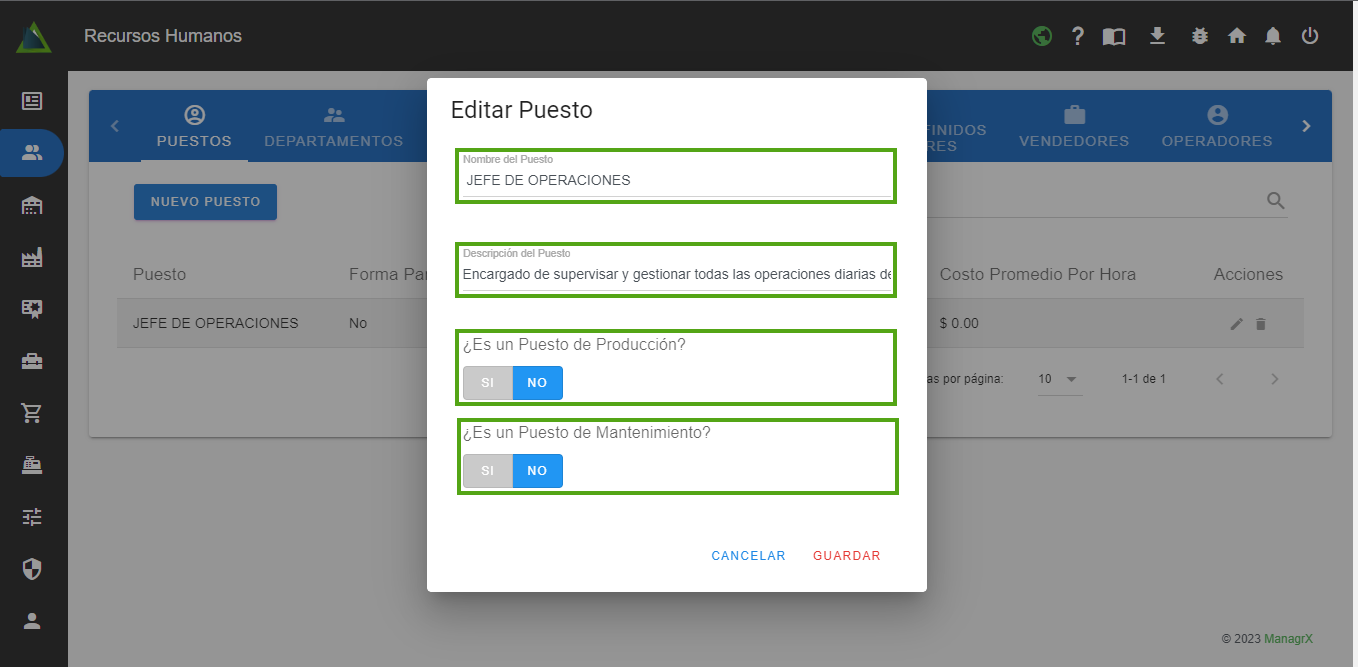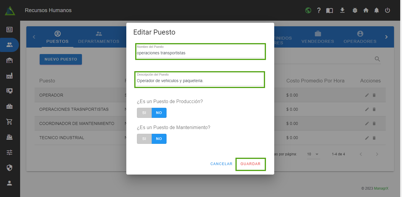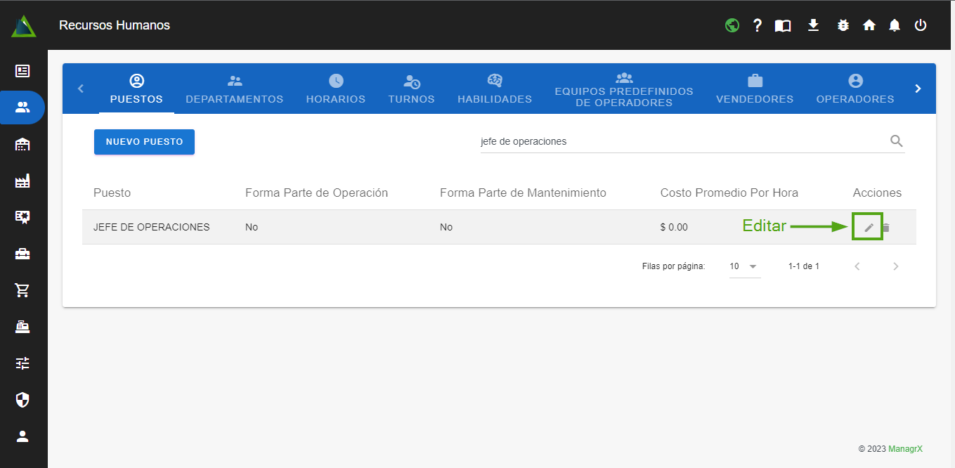 Para poder editar un Puesto en ManagrX debe seguir los siguientes pasos.