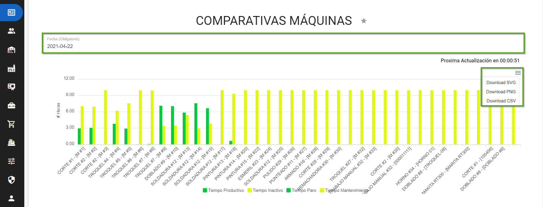 Para poder ver el reporte de comparativas máquinas en ManagrX debe seguir los siguientes pasos: