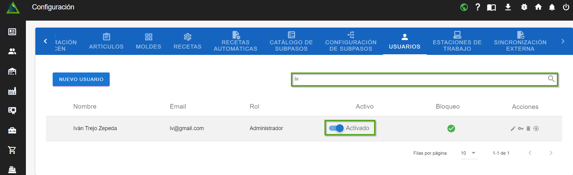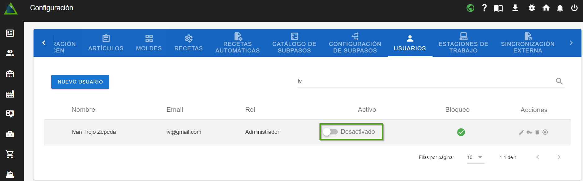 - Si quieres regresar el estado del usuario a “activo”, haz clic nuevamente en el ícono mencionado.